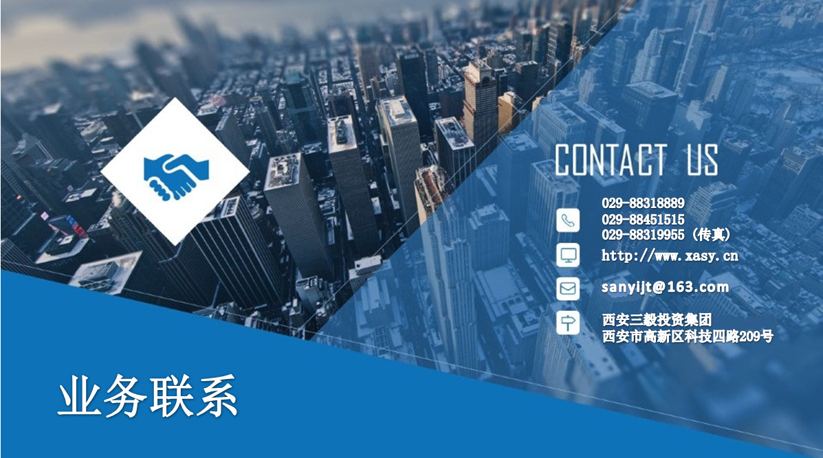 公司名稱:西安三毅投資集團 公司地址:西安市高新技術(shù)開發(fā)產(chǎn)業(yè)區(qū)科技四路209號 郵政編碼:710065 公司電話:029-88318889 029-88451515